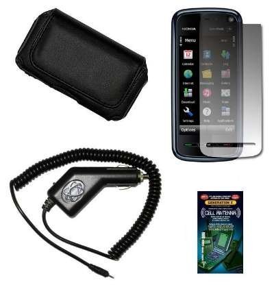 Cell Phone Accessories Bundle For Nokia 5800 XpressMusic (Includes; Premium Leather Side Carry Case, Rapid Car Charger, Custom LCD Screen Protector, Generation X Antenna Booster)