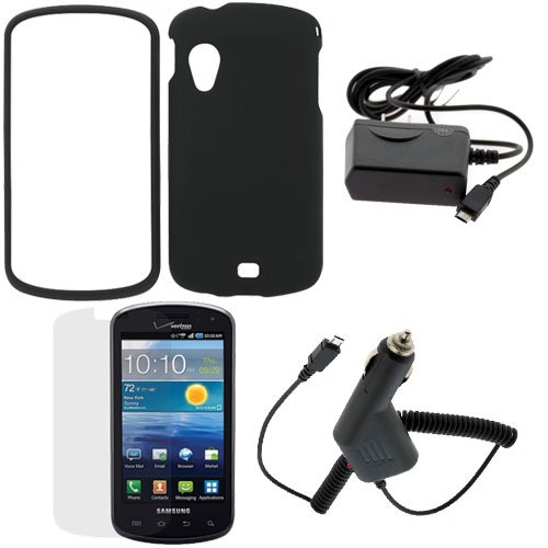 - All Brand New Components - Compatible with Verizon Samsung Stratosphere I405- 1 x GTMax Black Hard Rubberized Snap On Protective Cover Case- 1 x Clear LCD Screen Protector Film Guard- 1 x Micro-USB Rapid Car Charger Power Adapter with IC Chip- 1 x Micro-USB Home Wall Travel AC Charger with IC Chip